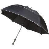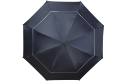 GP-80 FALCONE golfparaplu XXL, diam. 140 cm, windproof, zwarte glasfiber stok en extra sterk dubbel glasfiber frame, zwart rubber gecoat handvat, met zilverkleurige piping en PVC foedraal.