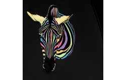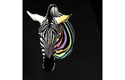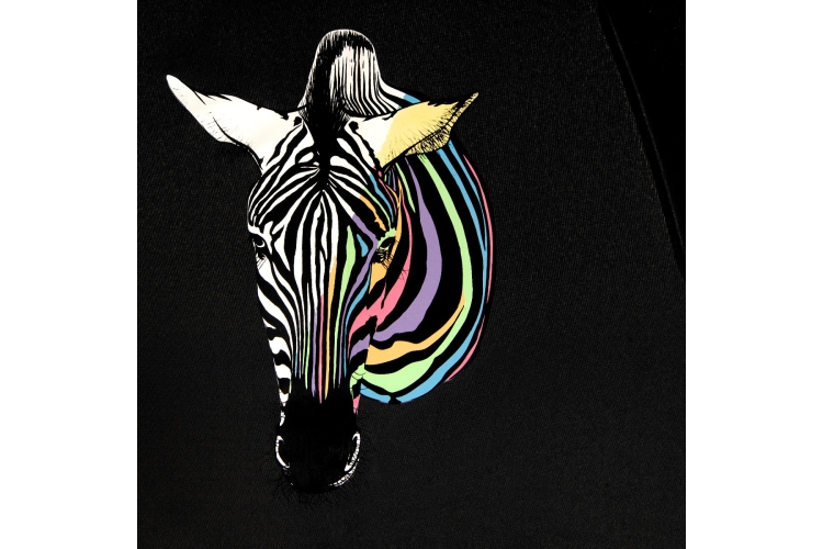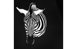 FALCONE wet look colour change paraplu met zebra print. automaat, windproof, zwart metalen stok, glasfiber frame, polyester pongee doek, zwarte kunststof haak.