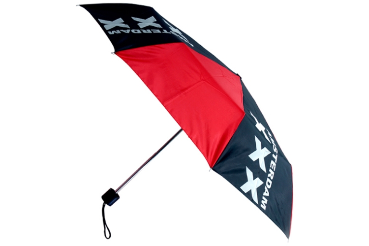LF-102 bedrukte opvouwbare paraplu, 3-delig, metalen stok en frame, met foedraal.