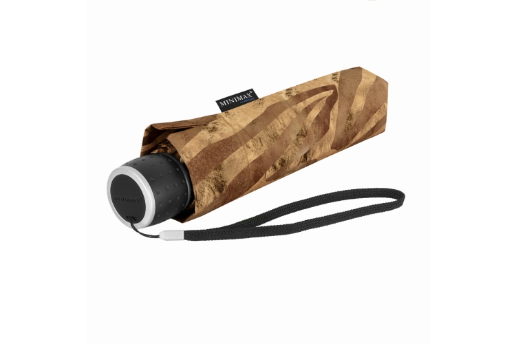 LF-196-C MINIMAX opvouwbare paraplu, windproof, 3-delig, metalen stok, zwarte glasfiber baleinen, zwart PU-gecoat kunststof handvat, met foedraal.