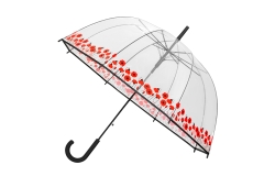 LA-30 FALCONETTI koepelparaplu, automaat, baleinen zwart metaal/glasfiber, 8 mm zwart metalen stok, transparante POE met bloemen print, zwarte kunststof haak en tips.