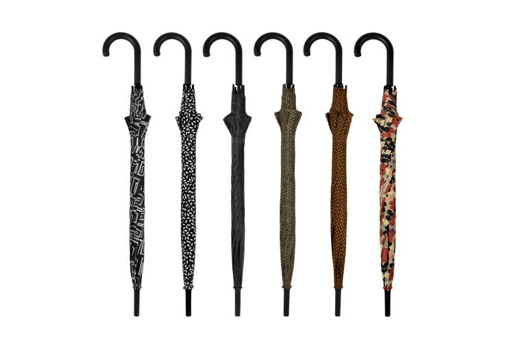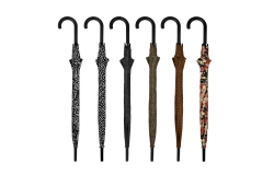 GA-309-B Falconetti paraplu, automaat, zwarte stok, glasfiber baleinen, polyester doek, zwarte kunststof haak en tips, .verschillende dessins, uitsluitend assorti verpakt.