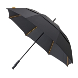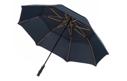 GP-76 Falcone hoge kwaliteit windproof golfparaplu, automaat. Hoogwaardig oranje glasfiber frame. 210T polyester pongee doek met overlappende panelen om de wind door te laten. Zwart rubber finished handvat, met een opening aan de onderkant om uw...