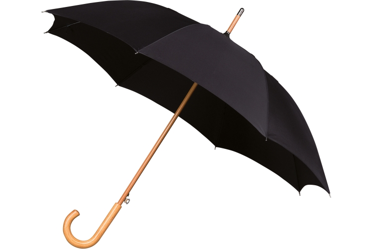 LA-17 FALCONE paraplu, automaat, windproof, zwart glasfiber frame, houten stok en haak.