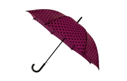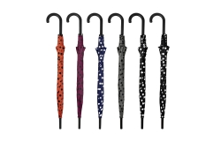 GA-309-D Falconetti paraplu, automaat, zwarte stok, glasfiber baleinen, polyester doek, zwarte kunststof haak en tips, .verschillende dessins, uitsluitend assorti verpakt.