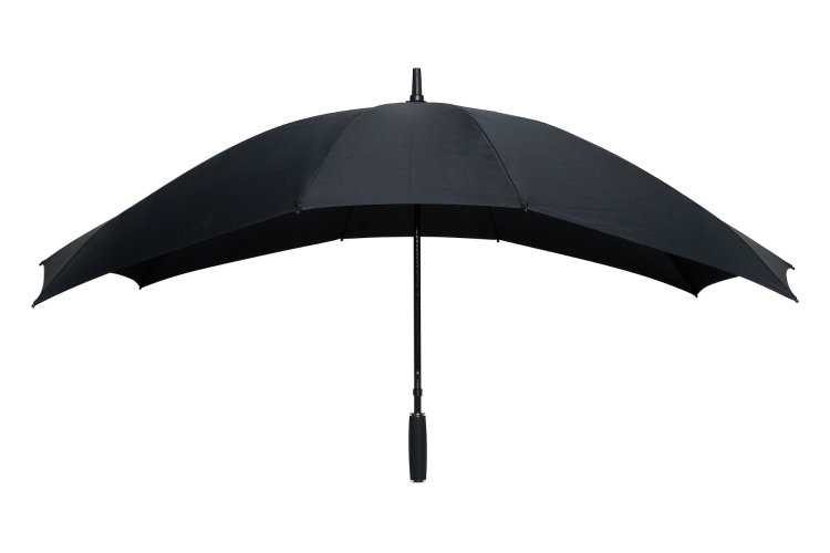 TW-3 duo-paraplu, zwarte glasfiber stok, zwarte glasfiber baleinen, zwart rubber gecoat handvat.