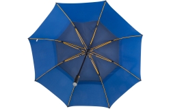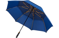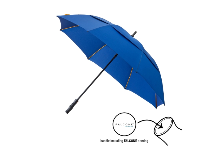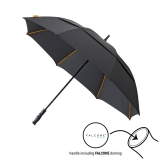 GP-76 FALCONE hoge kwaliteit windproof golfparaplu, automaat. Hoogwaardig oranje glasfiber frame. 210T polyester pongee doek met overlappende panelen om de wind door te laten. Zwart rubber finished handvat, met een opening aan de onderkant om uw...