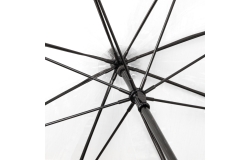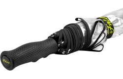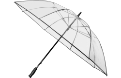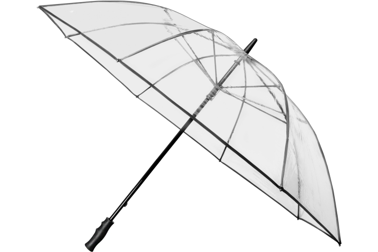 GP-70 FALCONE transparante PVC paraplu van hoogwaardige kwaliteit. 14 mm zwarte glasfiber stok en frame, diam. 120 cm, v.v. zwarte piping.