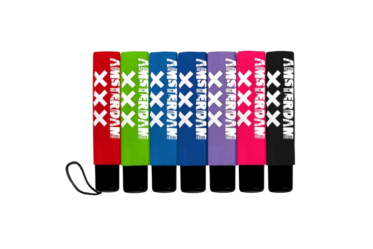 LF-101-AMS-ASS bedrukte opvouwbare paraplu, 3-delig, metalen stok en frame, met foedraal. Uitsluitend assorti verpakt.