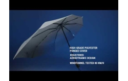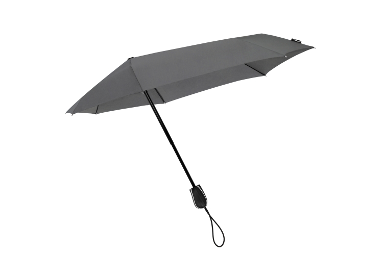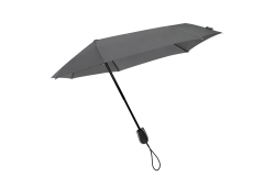 ST-9 STORMaxi aërodynamische opvouwbare stormparaplu. Deze vernieuwde versie van onze stormparaplu is getest in windtunnels en trotseert gemakkelijk windsnelheden tot 80 km/h. Hij heeft een verstevigde 3-delige zwarte stok, verstevigd zwart...
